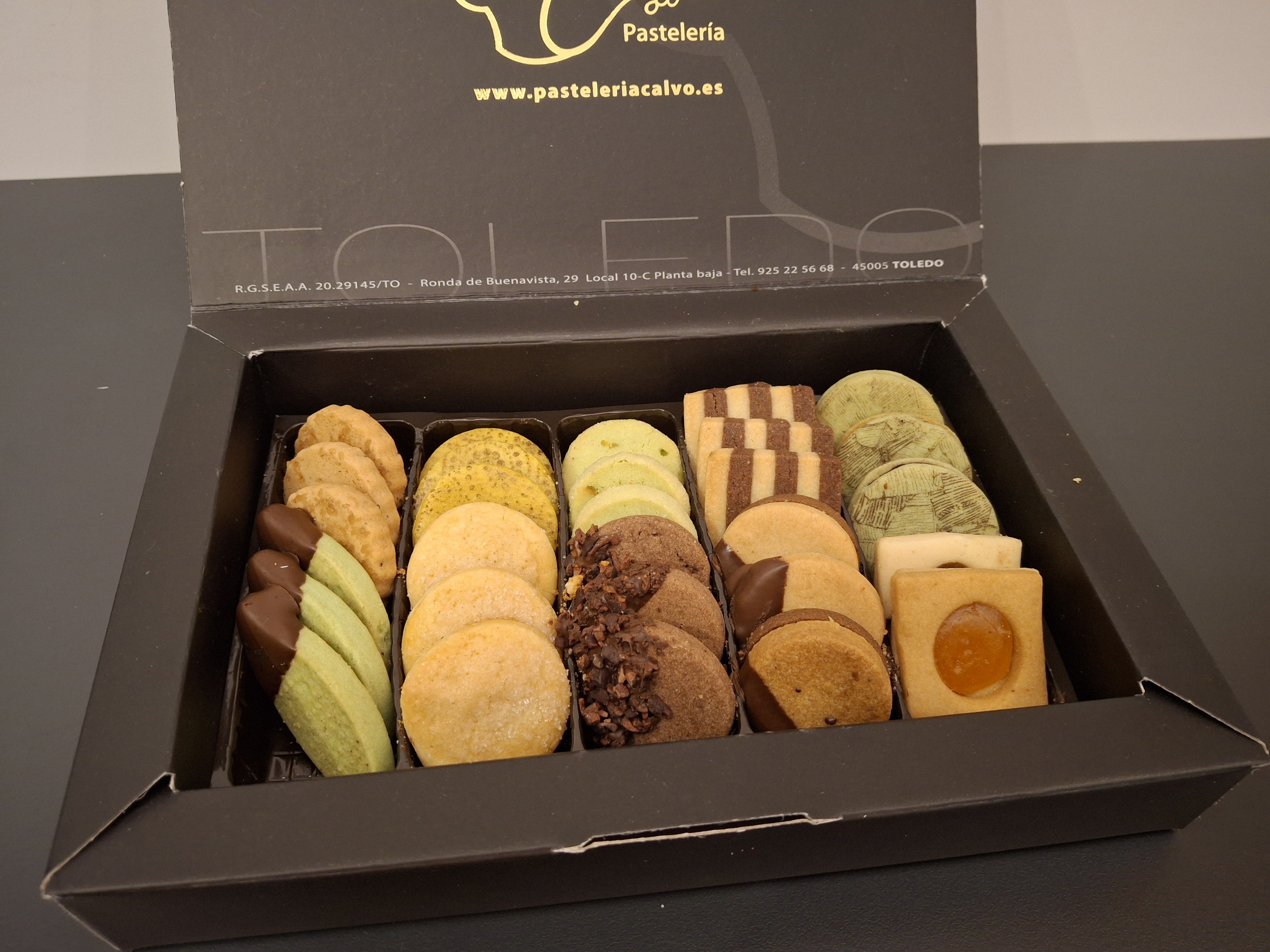 Cajas de Pastas de Té de 200g y 400g. Pastas surtidas con diferentes sabores y rellenos. Contienen frutos secos, lacteos y gluten. Posible presencia de trazas de cacahuete, soja y frutos de cascara.